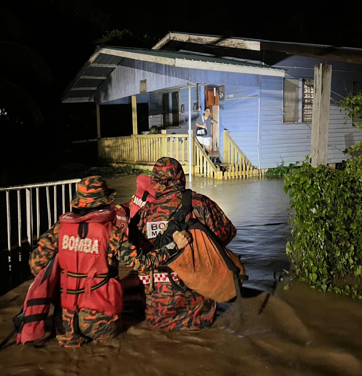 “Pasukan bomba tiba di lokasi pada jam 7.36 malam dan mendapati beberapa kawasan perumahan dinaiki air. Seorang mangsa wanita berusia 45 tahun berjaya dipindahkan ke rumah keluarganya yang berdekatan.
