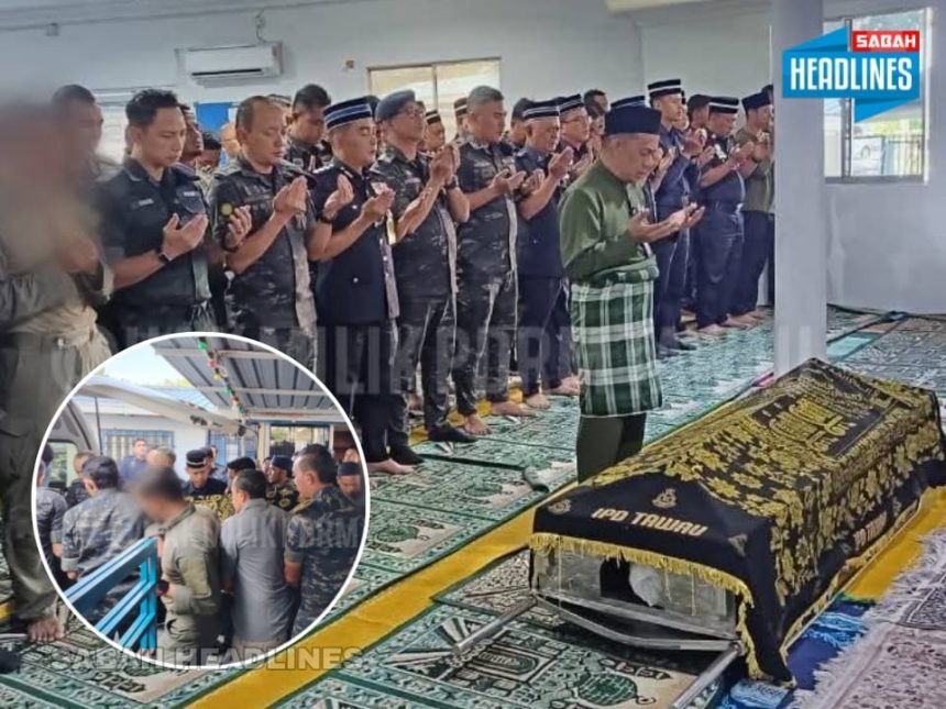 TAWAU, 23 Jan: Suasana hiba menyelubungi Masjid As Salam, Ibu Pejabat Polis Daerah (IPD) Tawau apabila kepimpinan tertinggi Polis Diraja Malaysia (PDRM) hadir memberikan penghormatan terakhir kepada Allahyarham Insp Khairil Azhar Kamaruddin, pegawai kanan Komando 69 Charlie Skuadron yang meninggal dunia ketika menjalani latihan menyelam di perairan Pulau Mataking, Semporna, kelmarin.