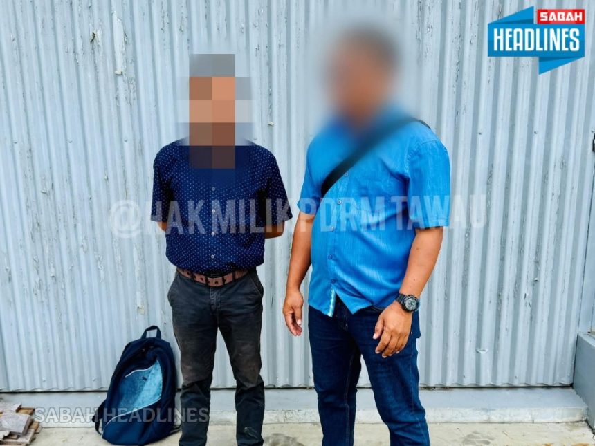Bertindak atas maklumat dan risikan sepasukan pegawai serta anggota Bahagian Siasatan Jenayah Tawau berjaya menahan suspek di kawasan kilang sama sekitar jam 10.30 pagi.